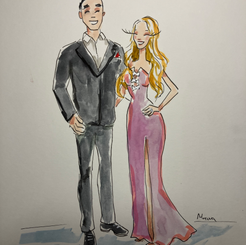 On May 25, 2024, an intimate wedding took place at the picturesque Houston Oaks Country Club Lake in Hockley, Texas. Our talented artist, accompanied by an assistant, provided four hours of live fashion sketching, creating 28 unique portraits for the 47 guests in attendance. The event featured a charming "Under the Oaks" cocktail hour, where guests mingled and enjoyed the serene surroundings. The sketches served as memorable keepsakes, adding a unique touch to the special day.